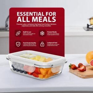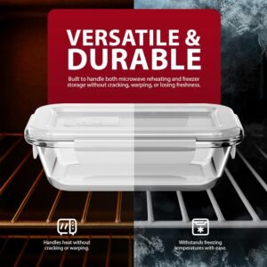 • DURABLE AND HEAT-RESISTANT BOROSILICATE GLASS – Made from high-quality borosilicate glass, these containers are tough, long-lasting, and resistant to thermal shock. Use them confidently in the oven (without lids), microwave, dishwasher, or freezer for stress-free convenience.
